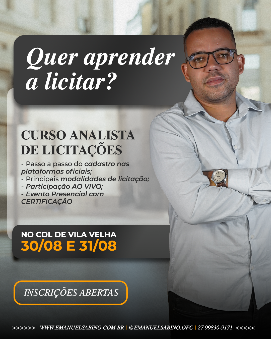 Se você busca se qualificar e aprender tudo sobre licitações, este curso é para você! Um curso presencial, realizado no ES, com dois dias de imersão no mundo das licitações, você vai aprender tudo que precisa saber para participar e vencer licitações.